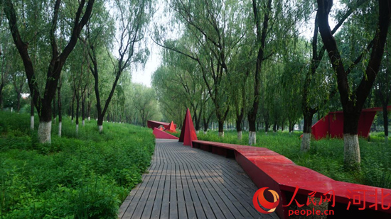遷安市三里河生態(tài)走廊綠道中的紅折紙。商立超攝