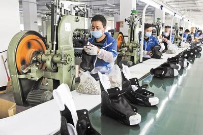 在張家口高新區(qū)冰雪運(yùn)動(dòng)裝備產(chǎn)業(yè)園,工人在一家冰球鞋生產(chǎn)企業(yè)車(chē)間工作。新華社發(fā)