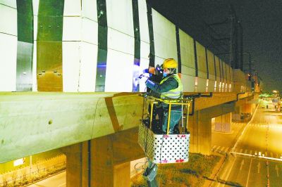 寧和城際高架橋護(hù)欄板加固工程施工現(xiàn)場。 南報(bào)融媒體記者 段仁虎攝
