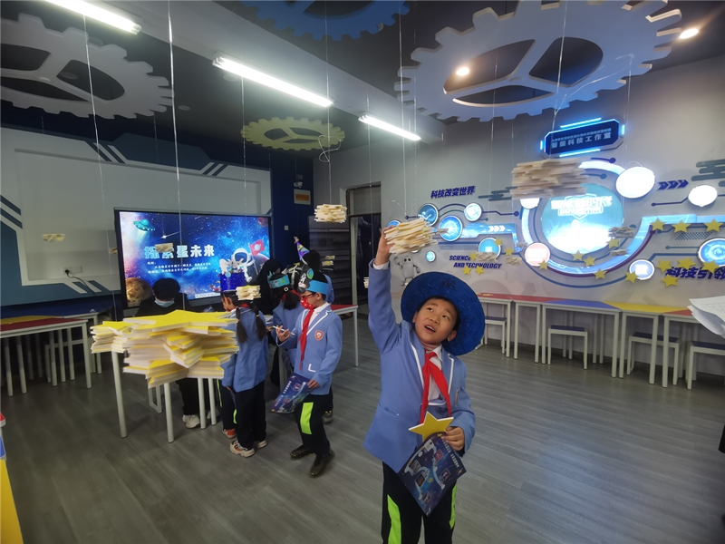 為進一步減輕學(xué)生的課業(yè)負擔,更好地促進學(xué)生們的全面發(fā)展,該校變“常規(guī)考試”為“學(xué)科素養(yǎng)考核”,學(xué)業(yè)評價借助“天宮之旅”項目式研學(xué)的形式進行,圍繞語文、數(shù)學(xué)、英語、體育、音樂、科學(xué)、美術(shù)七門學(xué)科,分一、二年級設(shè)置了“天宮生活艙”“探索星未來”“星球?qū)ε觥薄疤占佑驼尽钡取瓣P(guān)卡”,學(xué)生們通過“闖關(guān)”既鞏固了知識,又提高了學(xué)習(xí)興趣。