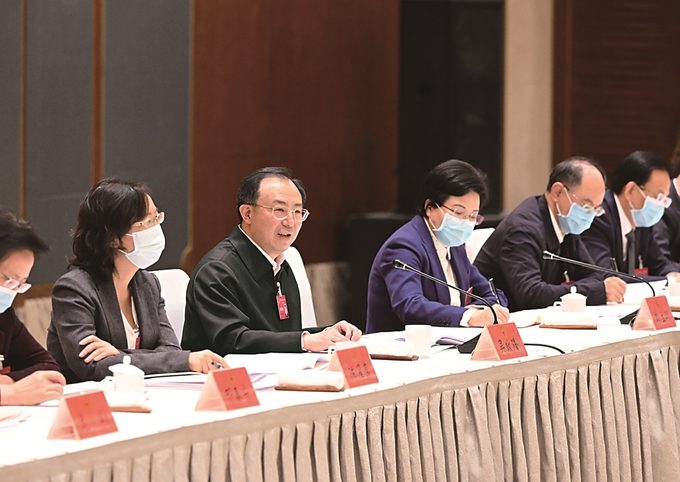 20日下午,省人大代表、省委書(shū)記吳政隆到所在的南京代表團(tuán),與代表們一起審議政府工作報(bào)告。 本報(bào)記者 吳勝 攝