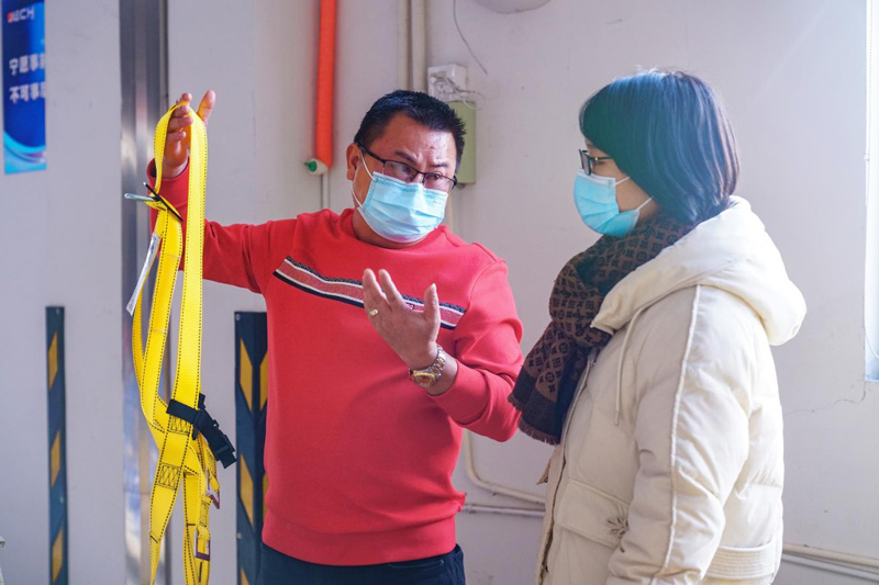 盡管臨近過年,位于婺城區(qū)臨江工業(yè)園區(qū)的某工具生產(chǎn)車間內(nèi)依舊一派繁忙?!斑@些安全繩是出口到美國的,這一批是出口到西班牙的。我們的訂單已經(jīng)排到了5月份,所以工人們都還在堅守崗位?!痹摴矩?fù)責(zé)人馮銘說。