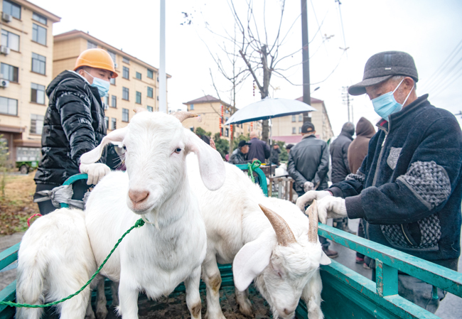1月24日,金華市金義新區(qū)赤松鎮(zhèn)仙橋臘月第一個(gè)活羊集市開市,各地農(nóng)戶運(yùn)來(lái)自家飼養(yǎng)的活羊上市交易。(時(shí)寬兵)