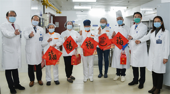 “過年食堂人手少,我國(guó)慶回去過了,春節(jié)就不回去了。醫(yī)院在節(jié)前還特意來(lái)關(guān)心我們,很溫暖!開心的呀!” 朱阿姨在醫(yī)院食堂已經(jīng)工作了15年了,已經(jīng)連著好些年沒回家過春節(jié)了,她把家安在了無(wú)錫,像他(她)們這樣一線的外包服務(wù)人員還有很多,勤懇工作在普通而平凡的崗位上,為胸科醫(yī)院的發(fā)展貢獻(xiàn)著光和熱。