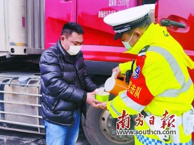 在粵北韶關(guān),雨雪冰凍等惡劣天氣是影響交通安全的重要因素。韶關(guān)交警在粵北執(zhí)勤點(diǎn)部署了50名執(zhí)勤警力,分5班次進(jìn)行24小時(shí)輪值。