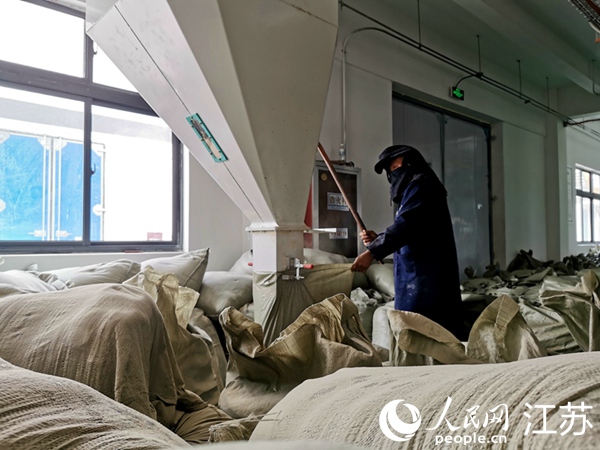 忙于裝米運(yùn)輸?shù)膶O元華。人民網(wǎng) 馬曉波攝