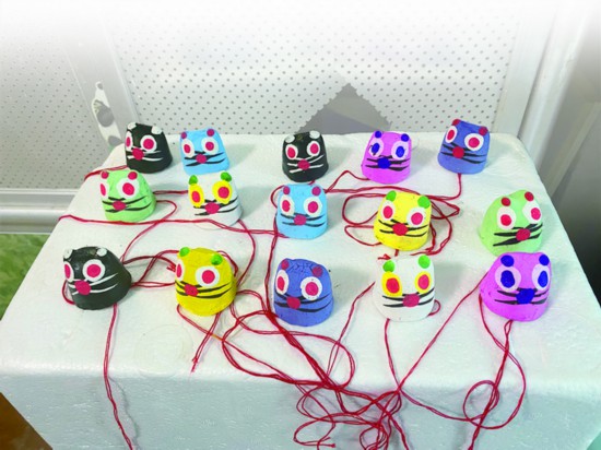 記者來到吳為民的工作室里,一提到“皮老虎”,吳為民滔滔不絕?!啊だ匣ⅰ怯媚嗯吣蟪煽蓯鄣男±匣⒌臉幼?,通過一只手握住它,另一只手滑動它身上的紅線,就會發(fā)出各種動物的叫聲。我做的這個‘皮老虎’,它能發(fā)出許多種動物的叫聲?!眳菫槊褚贿呎f著一邊為記者演示,“隨著滑動的頻率的變化,它能發(fā)出各種惟妙惟肖的聲音,有貓叫、青蛙的叫聲、老母雞的叫聲等等?!?/p>
