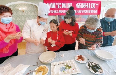昨天下午,十幾名來自前門西河沿社區(qū)的退休職工和兒童來到全聚德和平門店,興致勃勃地在面點(diǎn)師傅的指導(dǎo)下包湯圓。 本報(bào)記者 閻彤?dāng)z