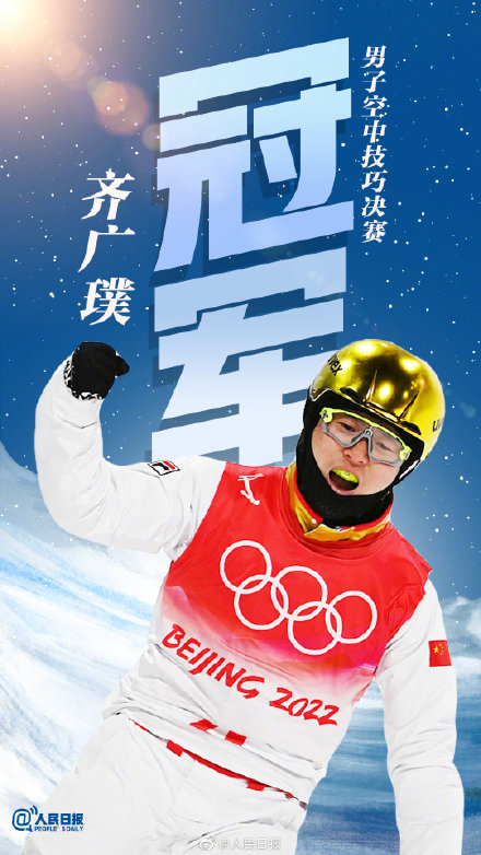 2月16日晚,在北京冬奧會自由式滑雪男子空中技巧決賽中,江蘇徐州籍運動員齊廣璞以一個難度系數(shù)5.0的動作穩(wěn)穩(wěn)落地,奪得該項目的冠軍,也為中國體育代表團贏得了本屆冬奧會的第7枚金牌。