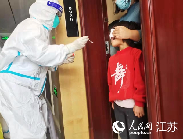 李莎莎在做核酸檢測(cè)。灌云縣委宣傳部供圖