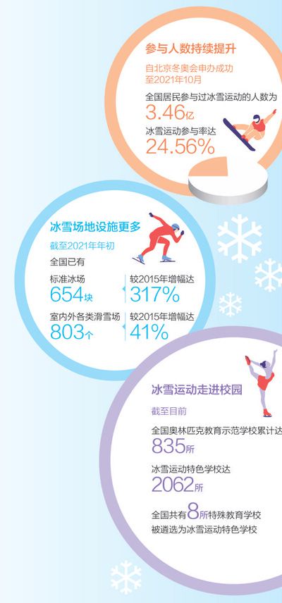 北京冬奧會和冬殘奧會的東風(fēng),播撒著冰雪運動的種子,在各地生根萌芽。自申冬奧成功至2021年10月,全國居民參與過冰雪運動的人數(shù)達到3.46億,冰雪運動參與率達24.56%,“帶動3億人參與冰雪運動”愿景成為現(xiàn)實。國際奧委會主席巴赫表示,我們歡迎中國成為冰雪運動大國。