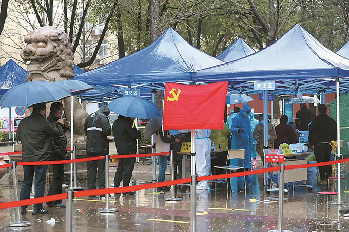 南京市發(fā)布關(guān)于疫情防控措施動(dòng)態(tài)升級(jí)調(diào)整的通告(第11號(hào)),自21日起,南京市在全市開(kāi)展新一輪分區(qū)域規(guī)模性核酸檢測(cè)。圖為鼓樓區(qū)下關(guān)街道閱江樓核酸檢測(cè)點(diǎn),市民在接受核酸采樣。 本報(bào)記者 陳儼 攝