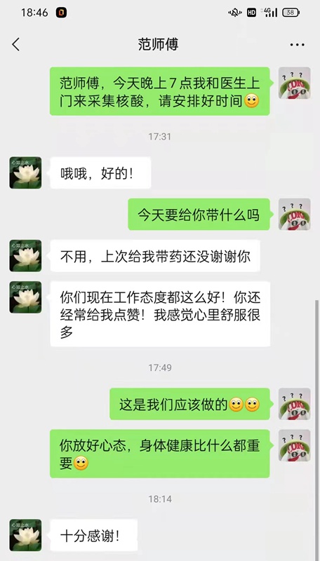 一天一個(gè)“贊”,集滿14個(gè)就能順利“通關(guān)”,解除居家隔離管控。萌生了這個(gè)創(chuàng)意,洪濤立馬采取實(shí)際行動(dòng)。“每天我在給居家隔離人員送上防疫物資的同時(shí),也會(huì)安撫他們今天又集了一個(gè)‘贊’,只要集齊14個(gè)‘贊’,就可以‘開門大吉’啦!”洪濤說,“之前居家隔離的居民在看到我們上門時(shí)可能會(huì)有些抵觸,現(xiàn)在他們每天都盼著我們?nèi)ァc(diǎn)贊’?!?/p>
