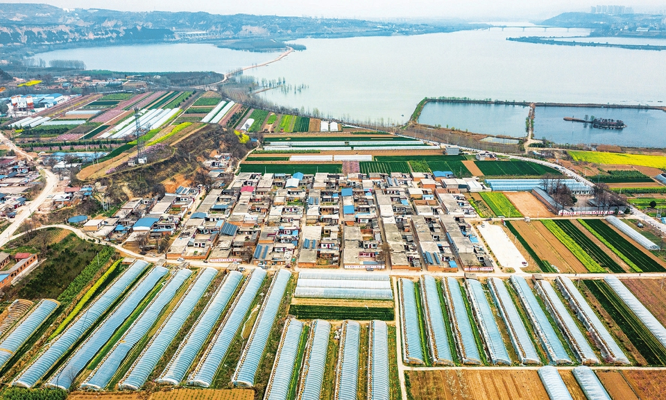 3月18日,春風輕拂下的平陸縣張村鎮(zhèn)后地村,風光旖旎。近年來,運城市持續(xù)推進鄉(xiāng)村振興戰(zhàn)略,農(nóng)村面貌如畫如詩,整齊的民居、鮮艷的桃花、連片的大棚交相輝映,構成一幅秀美的新農(nóng)村畫卷。(薛俊攝)