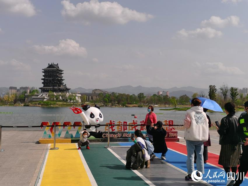 “2022,成都成就夢想!”一個(gè)大熊貓手持大運(yùn)會火炬的雕塑造型旁,寫著這句話,吸引了不少游人在這里打卡拍照。2022年,成都成就的不只是大運(yùn)會運(yùn)動員們的夢想,還有更多熱愛生活、熱愛體育的人的夢想。