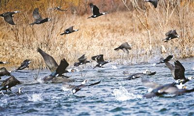 北京青年報記者了解到,密云水庫增殖放流工作正在進行中,預計半個月內將有581噸凈水魚苗分批投入密云水庫。而正因為大批魚苗入庫,至少2000只以上西伯利亞銀鷗、紅嘴鷗、鸕鶿、蒼鷺等鳥類紛至沓來,上下翻飛著覓食。攝影/本報記者 郝羿