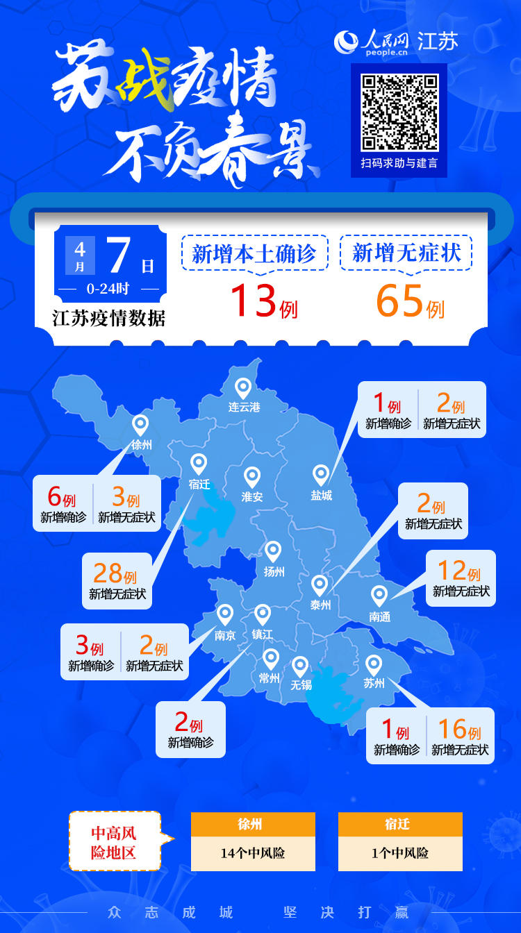 4月7日江蘇新增本土確診病例13例 本土無(wú)癥狀感染者65例