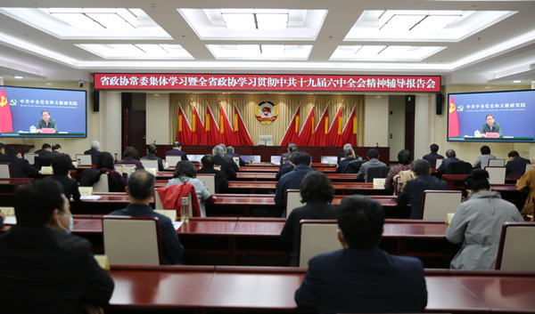 河北省政協(xié)舉辦常委集體學(xué)習(xí)暨全省政協(xié)學(xué)習(xí)貫徹中共十九屆六中全會精神輔導(dǎo)報告會對中共十九屆六中全會精神進行系統(tǒng)深入解讀。胡澤瑞攝