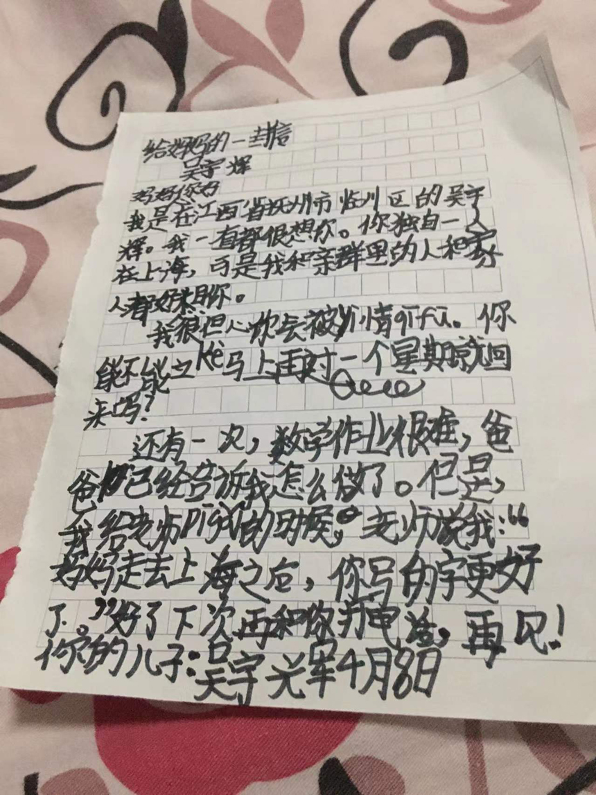 “我是后來才知道,兒子的這封信是瞞著家人寫的,并用奶奶的手機(jī)拍下來發(fā)給我。”張沖華告訴本網(wǎng),這是兒子給自己的第一封信,真的太感動(dòng)了,一定要認(rèn)認(rèn)真真的給他回一封信,話語中帶著哽咽。