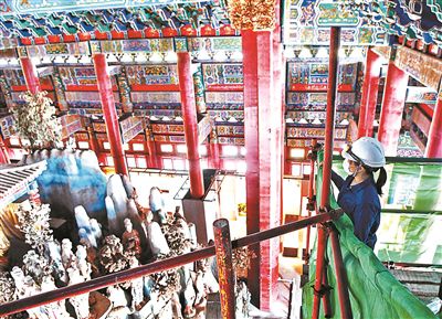 目前,北海公園小西天景區(qū)已暫停開放,進(jìn)行結(jié)構(gòu)安全鑒定。北京青年報(bào)記者了解到,這是北海公園首次針對(duì)古建筑的結(jié)構(gòu)安全性進(jìn)行全面“體檢”,為今后制定修繕?lè)桨傅於ɑA(chǔ)。據(jù)悉,在不影響正常游覽的情況下,小西天建筑群將于“五一”假期恢復(fù)對(duì)公眾開放。 攝影/本報(bào)記者 郝羿