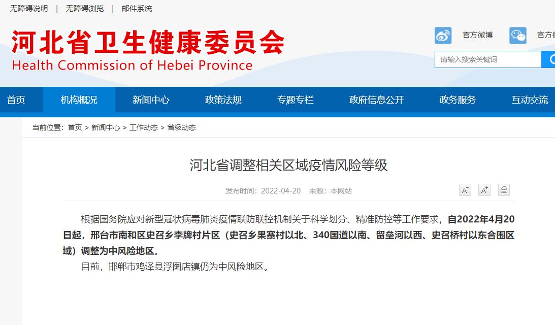 河北省調整相關區(qū)域疫情風險等級 邢臺市南和區(qū)史召鄉(xiāng)李牌村片區(qū)調整為中風險地區(qū)