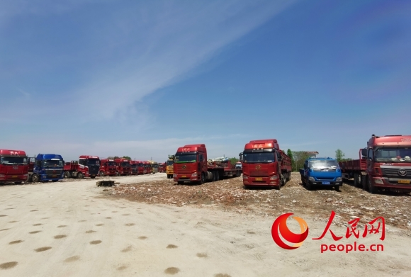 南通市崇川區(qū)陳橋街道疫情防控外來貨車集中停車點。人民網(wǎng)記者 王繼亮攝