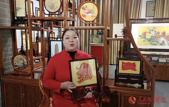 國家級非物質文化遺產項目省級傳承人程苗欣制作的虎虎生威緙絲。 人民網(wǎng) 周博攝