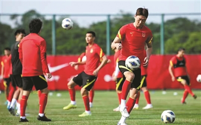 自迪拜杯國際足球錦標(biāo)賽戰(zhàn)罷,U23國家隊就一直在??谶M行隔離備戰(zhàn)。本場比賽中,除了從國家隊前來馳援的張玉寧、張琳芃和吳曦三名超齡球員外。另外兩名適齡球員朱辰杰和戴偉浚也終于得以與全隊一起進行比賽。