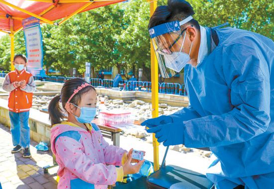 昨天清晨,天剛蒙蒙亮,鄭爍就到達集結(jié)點位。核酸檢測開始后,鄭爍主要負責現(xiàn)場秩序維護引導、掃碼登記、查驗健康寶、協(xié)助老年人做好信息登記等工作。“昨天北京的最高氣溫達到32攝氏度,核酸檢測期間,我們志愿者小組為上千位居民提供了服務,這期間一個跟著媽媽來做核酸的小女孩每路過一位志愿者都會主動說一聲‘叔叔阿姨,辛苦了!’聽著孩子甜美的問候,再累也值了!”鄭爍告訴記者。
