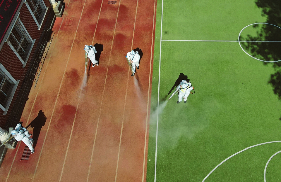 5月6日,為做好校園疫情防控工作,保障師生的身體健康與生命安全,創(chuàng)造良好、健康的生活學(xué)習(xí)環(huán)境,省城雙南小學(xué)邀請(qǐng)藍(lán)天救援隊(duì)走進(jìn)學(xué)校,對(duì)校園進(jìn)行全面消殺,為學(xué)生安全有序返校做好準(zhǔn)備。(記者王瑞瑞攝)