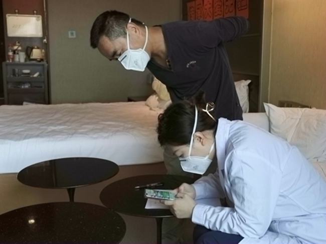 5月4日晚6點多,從香港求醫(yī)歸來的張氏夫婦懷抱著精神萎靡的哼哼,由機場大巴閉環(huán)轉運至海淀區(qū)紅杉集中醫(yī)學隔離觀察點,晚上8點半,到達酒店辦理入住。來自四季青醫(yī)院的張龍珍負責接待工作,豐富的工作經驗讓她第一時間注意到了被母親抱在懷中的哼哼,臉有一些不正常的浮腫,便上前詢問情況,得知他患有神經母細胞瘤并轉移至腦部及全身時,張龍珍便親自照顧起了這一家人,一步一步指導哼哼爸爸掃碼,填寫個人信息,并在前臺開放綠色通道,快速為他們辦理入住。