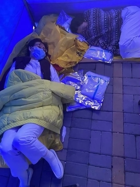 猝不及防的臨時通知打斷了急救中心工作人員的晚餐,也來不及扒拉兩口飯,立刻起身,換上全套防護裝備,一個個“大白”已然整裝待發(fā)。