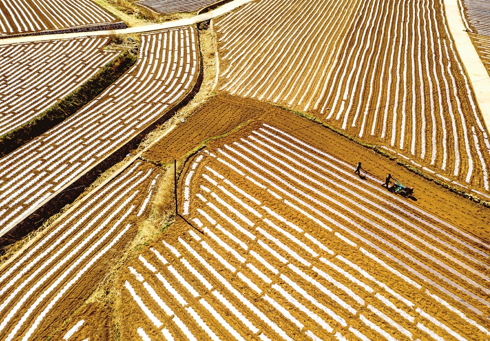 5月15日,晉中市左權縣下莊村鋪滿地膜的農(nóng)田在陽光照射下,構成一幅錦繡太行的詩畫田園景致。近年來,左權縣積極落實糧食直補,地膜、農(nóng)機財政補貼的政策,極大地調(diào)動了農(nóng)民種糧的積極性,糧食連續(xù)獲得豐收。同時,通過農(nóng)旅融合,詩畫般的田園風光吸引了不少游客,助推農(nóng)民增收。(邢蘭富)