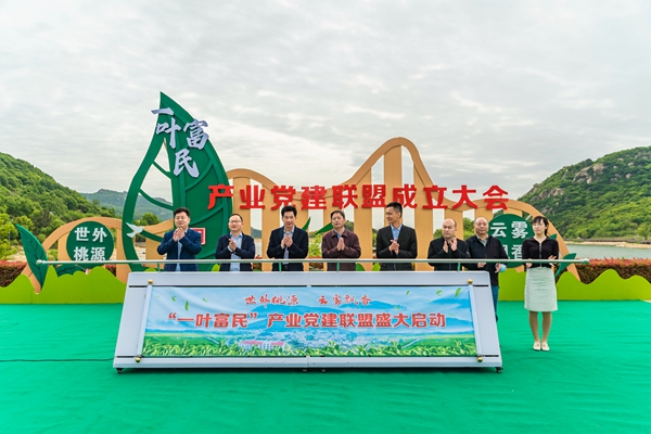 連云區(qū)“一葉富民”茶產(chǎn)業(yè)黨建聯(lián)盟盛大啟動(dòng)。連云區(qū)委宣傳部供圖