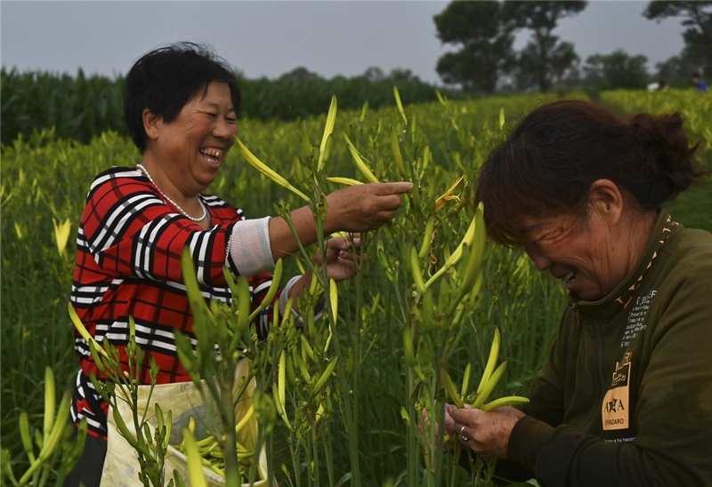 61歲的唐萬是唐家堡村第一批黃花菜種植戶。2020年,他將家中的30畝土地流轉(zhuǎn)給當(dāng)?shù)睾献魃绶N植黃花?!耙郧白约悍N地的時候,一年下來收入有時還不到2000元。沒想到,30畝黃花地改變了我們一家的生活,現(xiàn)在每年都能有3萬多元的收入,好的時候甚至更多?!闭f起黃花帶來的好生活,唐萬臉上流露出喜悅。