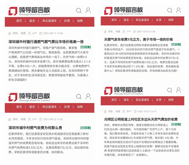 近年來,隨著深圳全力推進城中村管道燃?xì)飧脑欤岸繓|”亂收燃?xì)赓M的現(xiàn)象層出不窮。多位深圳網(wǎng)友曾在人民網(wǎng)“領(lǐng)導(dǎo)留言板”留言,反映房東收取的燃?xì)赓M遠(yuǎn)高于《深圳市燃?xì)鈨r格制度標(biāo)準(zhǔn)》?!罢茝V天然氣入戶,是個大好事,我們都非常支持,可是卻給了少數(shù)二手房東加價收費的名目?!币晃痪W(wǎng)友說。