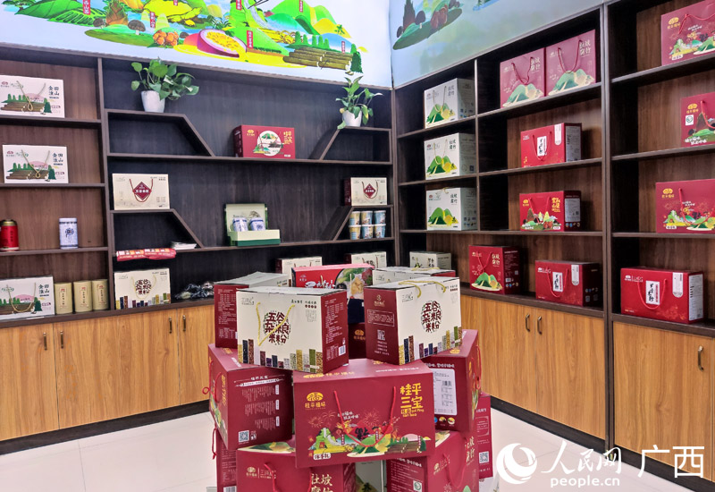 桂平市農村產權流轉交易中心內的桂平特產展示。人民網(wǎng)記者 王勇攝