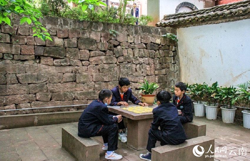 課后,一群學(xué)生聚在一起下起象棋。人民網(wǎng) 劉怡攝
