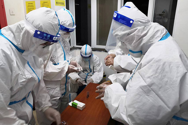 在永定鎮(zhèn)疫情封控區(qū),文旅人變身“大白”,無(wú)論是烈日炎炎還是深夜時(shí)分,他們24小時(shí)堅(jiān)守奮戰(zhàn)在封控小區(qū)抗疫第一線,面對(duì)疫情確診樓,全體領(lǐng)導(dǎo)干部輪流上陣,勇挑重?fù)?dān)。他們參與快遞消殺、物資配送、入戶核酸檢測(cè)、大數(shù)據(jù)流調(diào)、門磁安裝等各項(xiàng)工作,開(kāi)展“敲門行動(dòng)”,爭(zhēng)創(chuàng)“五大員”,爭(zhēng)當(dāng)物資配送“服務(wù)員”、核酸檢測(cè)“查驗(yàn)員”、數(shù)據(jù)排查“流調(diào)員”、夜間值守“保安員”、防疫前線“戰(zhàn)斗員”。截止到目前,門頭溝區(qū)文旅局共組織干部疫情下沉400余人次,下沉人員占全單位干部職工比重高達(dá)90%以上。