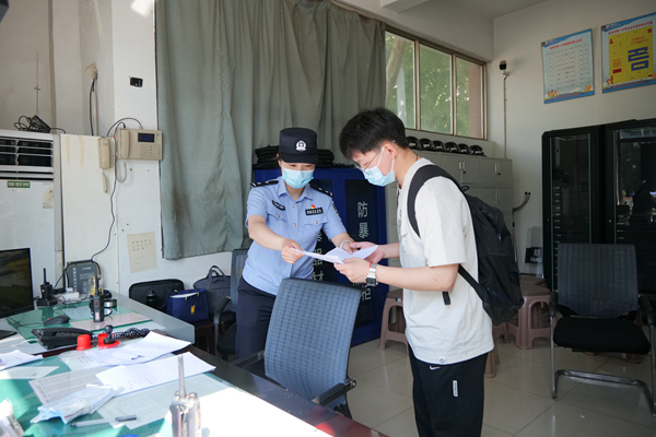 6月7日一早,在連云港灌南第二中學(xué)考點前,兩名考生向執(zhí)勤民警求助稱身份證遺忘在家中,駐守在考點的灌南縣公安局新安派出所戶籍工作人員核實身份后,現(xiàn)場為考生出具臨時身份證明,同樣用時不到5分鐘,保障考生順利開考。