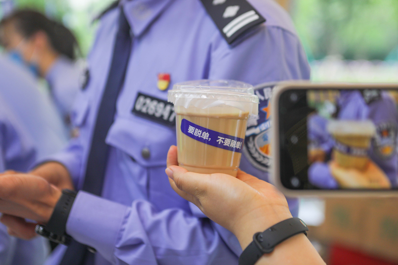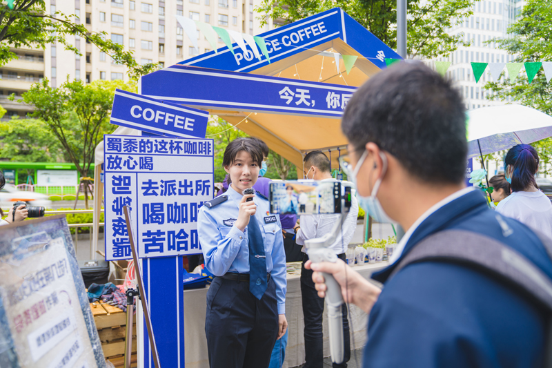 同時(shí),隨著“坐在警務(wù)站里喝咖啡”話題持續(xù)火爆,公安民警將踐行“三能”要求與參與創(chuàng)意市集相結(jié)合,創(chuàng)新推出了“蜀黍請你喝咖啡 反詐知識(shí)帶回家”快閃活動(dòng),以更有活力、更接地氣、更潮流入時(shí)的方式,讓年輕群眾在學(xué)習(xí)知識(shí)的過程中,還能品嘗到香醇可口的咖啡。