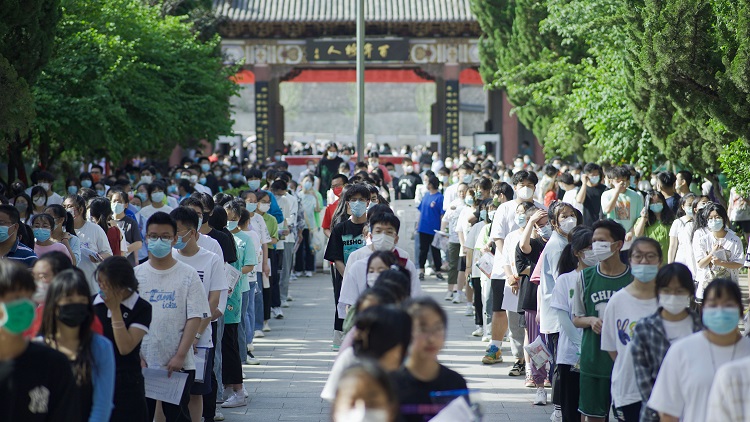 晉城一中考點(diǎn)外,考生等待入場(chǎng)。張偉攝