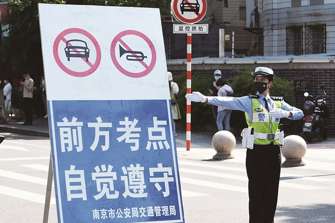 “今年考生家長大多選擇地鐵、公交等公共交通工具到達考點,周邊居民和在附近上班的人員也都能理解配合,高考現(xiàn)場環(huán)境一年比一年好。”南京交警一大隊執(zhí)勤二中隊中隊長錢臣表示??键c現(xiàn)場,交警也對非機動車駕駛?cè)藛T進行友情提醒,請他們不要按喇叭。在南京市第一中學(xué)考點,南京交警三大隊副大隊長桂子振告訴記者,“下午1點,我們就在考點周邊路口安排3名民警巡邏?!痹诟骺键c周邊道路,交警均擺放了疏導(dǎo)車輛的交通標(biāo)志,并實時為考生提供幫助。