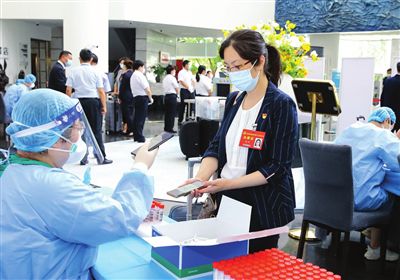 因新冠疫情防控需要,此次黨代會實行全程閉環(huán)管理?!罢埬葴y一下體溫。”工作人員熱情地引導著。代表們佩戴口罩,保持間距,有序完成測溫、驗碼、安檢、流調(diào)、核酸檢測,隨后全身心投入到參會各項準備工作。