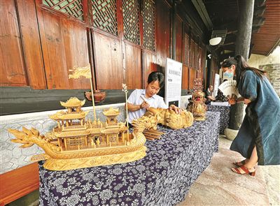 寧波主會場“運河市集”展示龍舟雕刻技藝。唐嚴(yán)攝