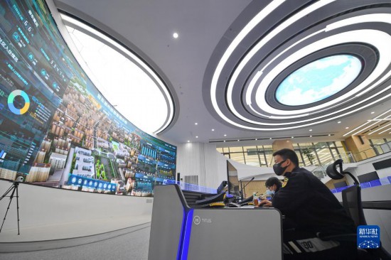 工作人員在雄安新區(qū)容東城市運(yùn)營管理中心監(jiān)管平臺(tái)工作(2022年3月29日攝)。新華社記者 朱旭東 攝