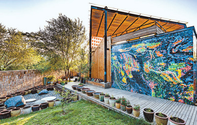 于是,郭愛和與洛陽(yáng)三彩藝術(shù)博物館的陶藝團(tuán)隊(duì)在村里扎下了根。一住倆月,郭愛和在村里老人的帶領(lǐng)下,走遍村子的每個(gè)角落,甚至熟悉了每一棵樹。曾經(jīng)在村民眼中破敗的老房子、老物件,被發(fā)掘出了潛在的藝術(shù)價(jià)值——老房子不要拆,改造一番可以做展館;土墻別推倒,貼上陶瓷,就是藝術(shù)墻;窯洞要修復(fù),掛上藝術(shù)品,擺上咖啡壺,就是邊休息邊欣賞藝術(shù)的休閑空間……