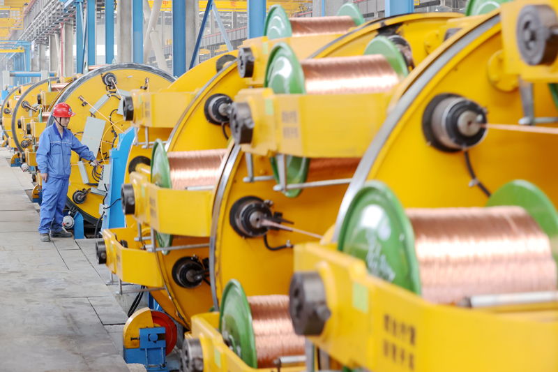 工人在智能化生產(chǎn)車間趕制特種線纜訂單。謝尚國攝