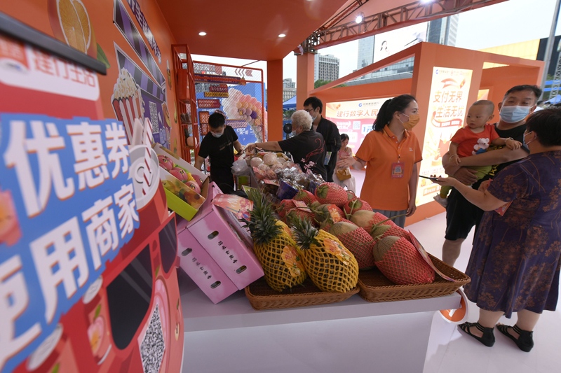 “618杭州拱墅消費(fèi)嘉年華”活動上,消費(fèi)者在選購水果。李忠攝