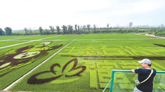 田園畫卷 青翠宜人 巨幅稻田畫添彩臺湖